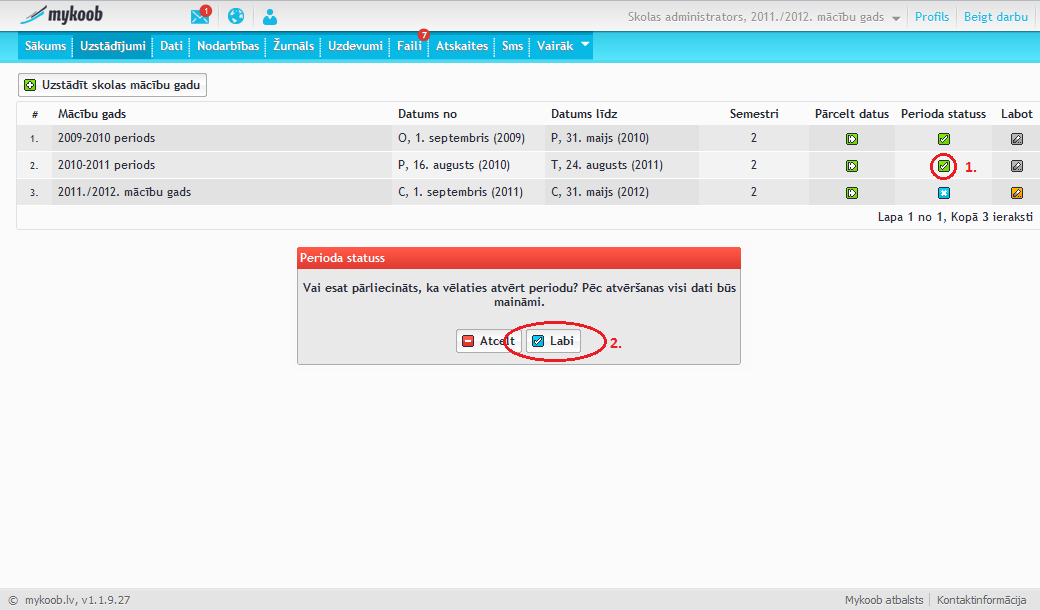 1. Ja ir jāveic lielāka datu labošana, atveriet attiecīgo mācību gadu zem sadaļas "Uzstādījumi" > "Mācību gads", kur būs iespējams labot visus datus visās sadļās parizvēlēto mācību gadu.